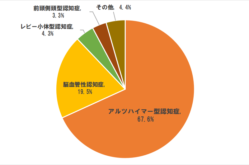 認知症と診断された方の8割以上は「アルツハイマー型認知症」「脳血管性認知症」「レビー小体型認知症」「前頭側頭型認知症(ピック病)」のいずれかに診断されます。この4つの認知症を四大認知症と呼びます。