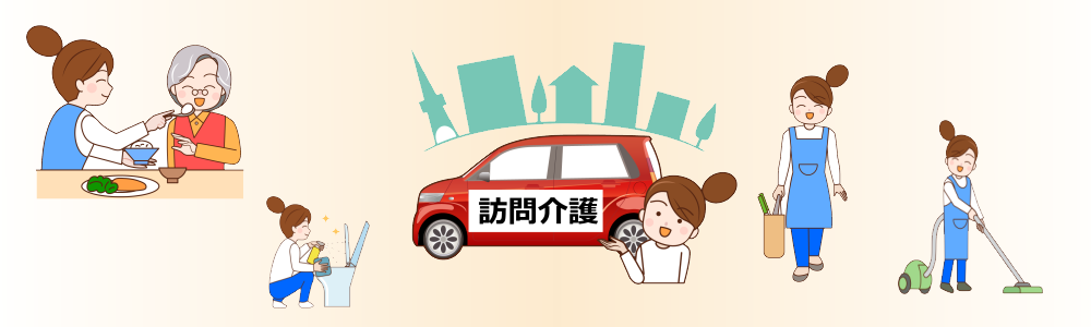 食事や排泄の介助、家事の手伝い、通院の付き添いなどを行うサービスです。
